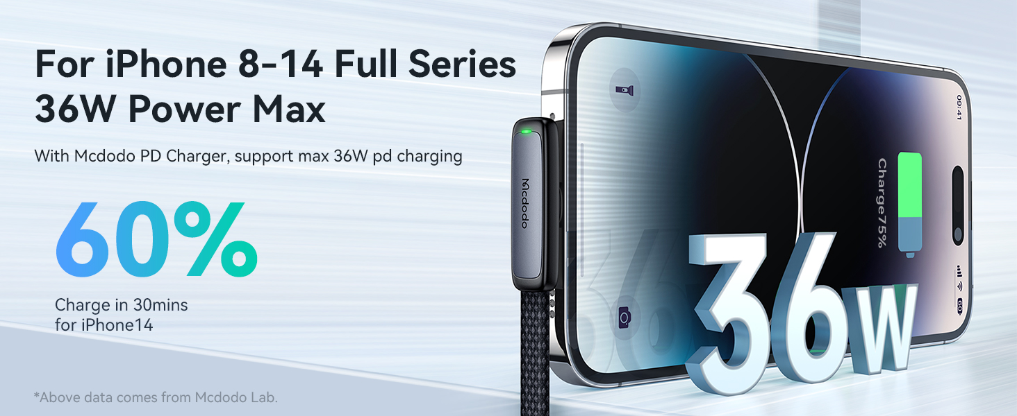 【Fast Charging and Data Transmission】It provides 36W PD fast power to quickly charge the iPhone series. It also supports charging and transmission at the same time, with a 480Mbps transmission speed, which is easy to handle Large files (Only supports phone to computer data transfer)