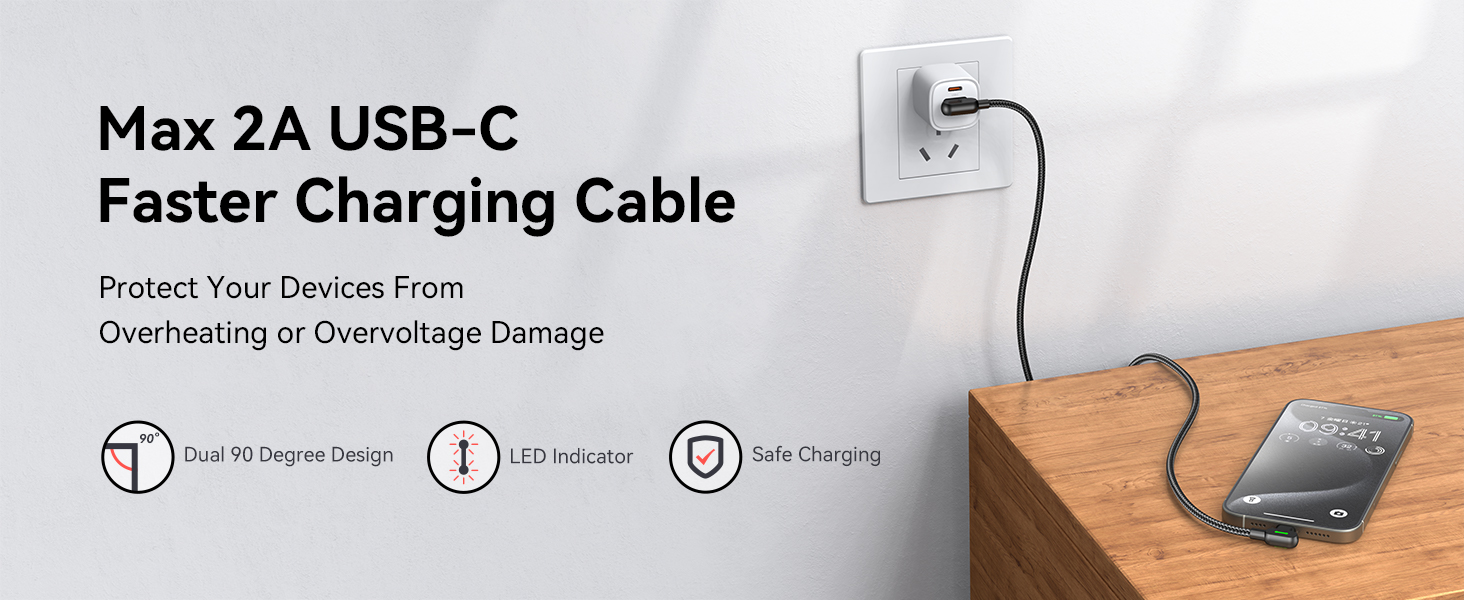 【LED Light Indicator】Two LED light modes-day and night mode. Day mode-choose the brighter side of the light. Night mode-choose the weaker side of the light. It is equipped with an MSC smart chip inside for automatic regulation and reasonable voltage control to protect the device battery from heat and damage.The thickened tin-plated copper core enhances conduction stability,resists interference, and charges faster.