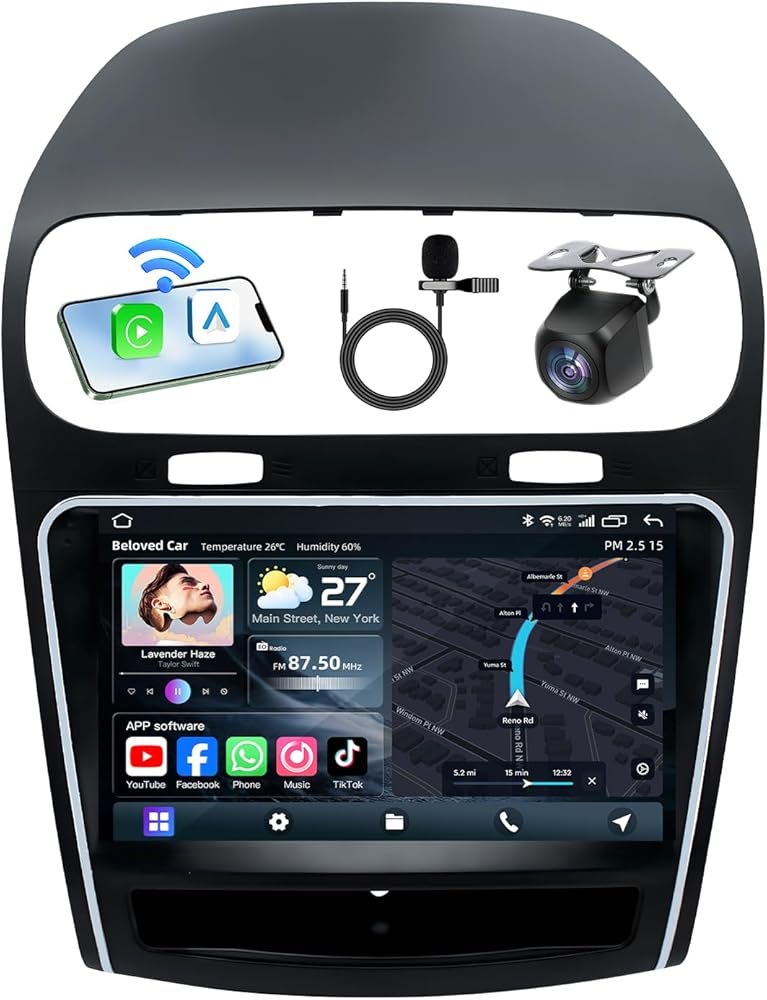 Car Radio for Dodge Journey 2011-2019: [8 Core 4G+64G] 9" 1280*800 HD Touchscreen Stereo with Wireless Carplay Android Auto 5G WiFi GPS Navigation Bluetooth FM AM RDS DSP 36-EQ SWC 1080P Backup Camera
