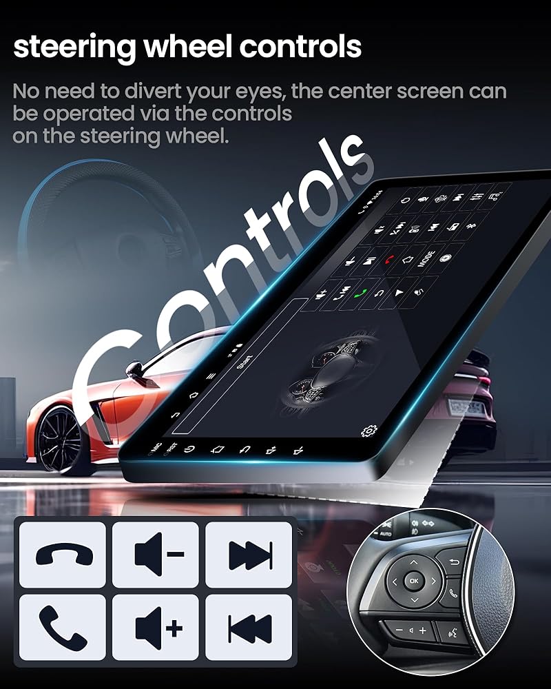 【SWC &1080P Rear View Camera】Steering wheel controls allow the driver to easily operate the vehicle's multimedia system, telephone, navigation and other functions via buttons on the steering wheel or the touch screen while driving, without having to distract their attention from touching other locations.The 1080p Rear View feature enables real-time monitoring by providing a wider and clearer field of view, reducing blind spots and lowering wind resistance