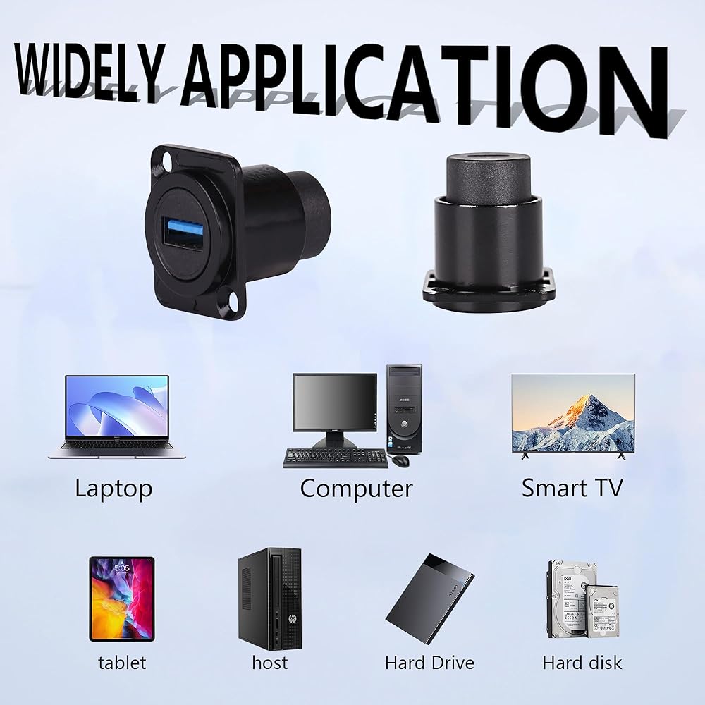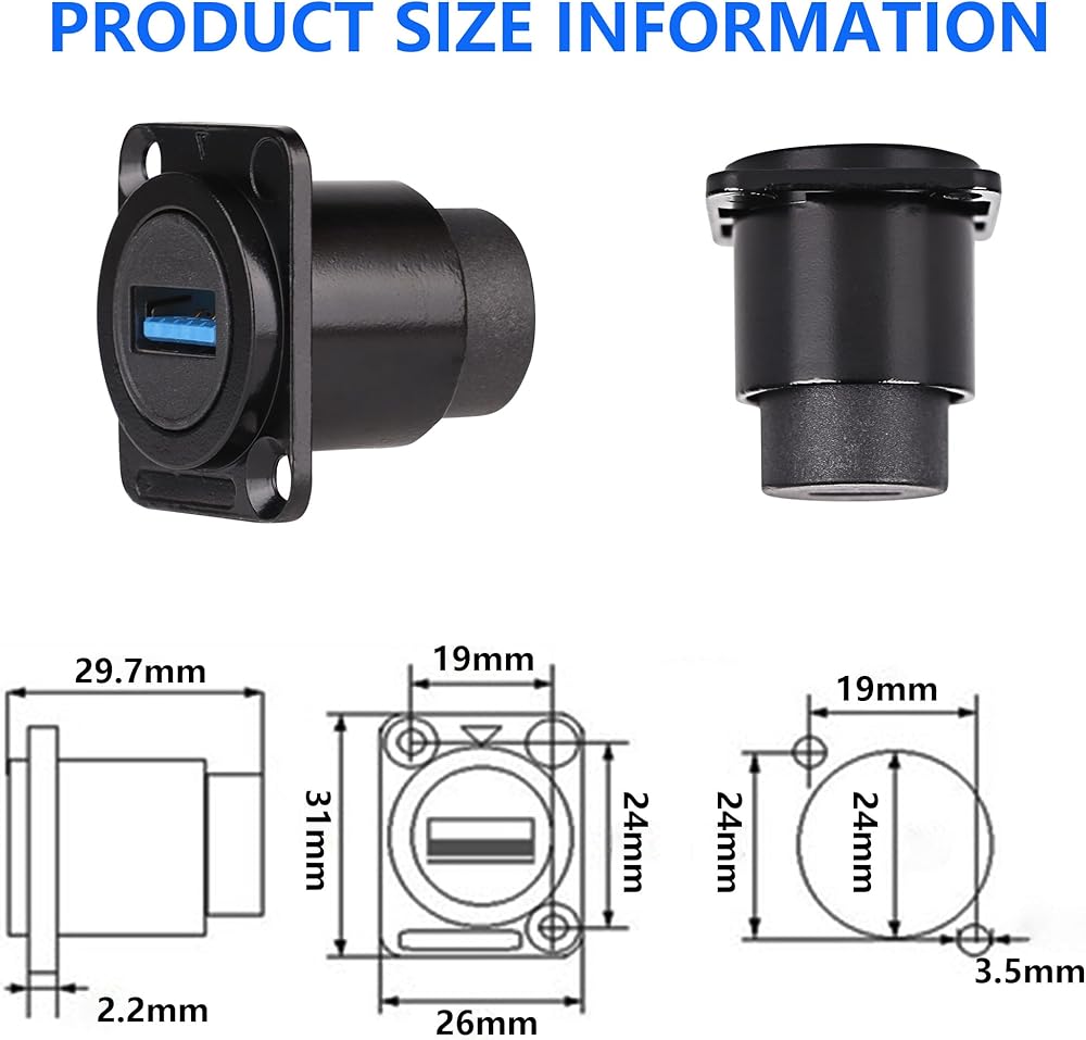 Universal D-Type Mounting: USB 3.0 to USB Type C Panel Mount adapter adopts tandard 34x22mm D-shaped cutout fits 99% equipment panels.