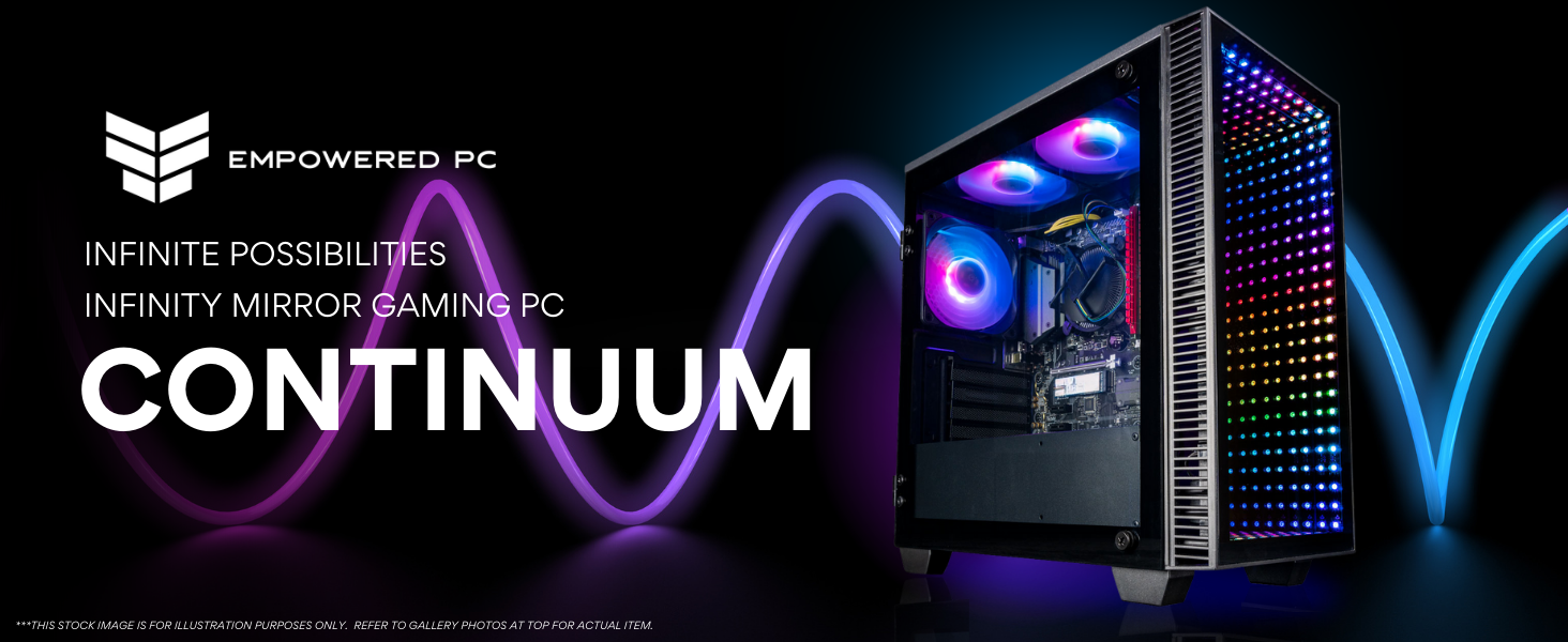 [PC CASE] Continuum Micro with Infinity Mirror Front Panel and Glass Side Panel Door | No Bloatware | Graphic output options include 1x HDMI and 1x DisplayPort Guaranteed, additional ports may vary | Free Rainbow Backlit USB Keyboard and LED USB mouse
