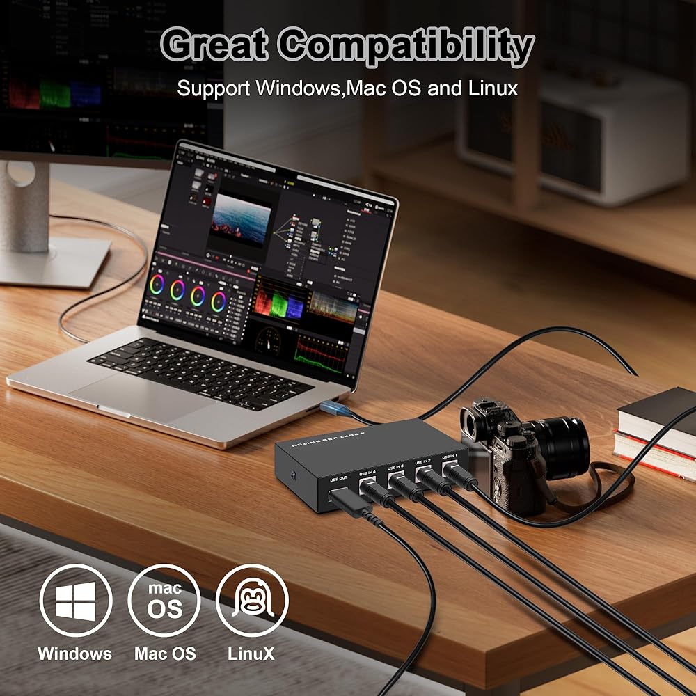🔘 One-Touch Switching, No Drivers Needed: Effortlessly switch between connected devices with a manual button—no software installation required. The USB switch selector works instantly with Windows, Mac, Linux, and more.