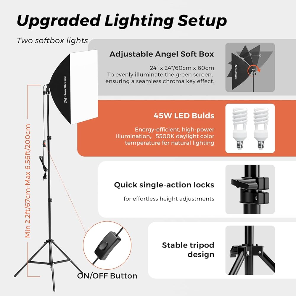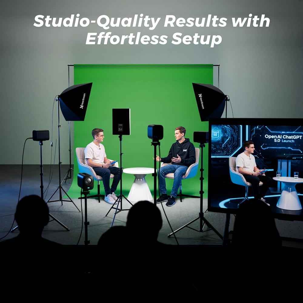 The NearStream VM33 Streaming Camera & VK40 Photography Lighting Kit Bundle is a complete, all-in-one solution for professional-quality livestreaming, video content creation, and virtual meetings. This bundle pairs the VM33 streaming camera with the VK40 photography lighting kit, delivering clear Full HD video, soft and even LED lighting, sturdy tripod stands, and a green backdrop for flexible studio setups. Whether you're streaming, recording videos, or hosting online meetings, this kit helps you achieve a clean, polished look from home or in a studio environment.