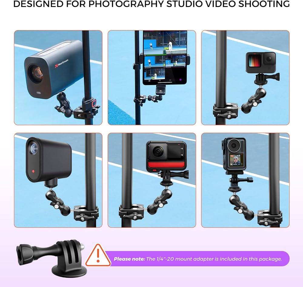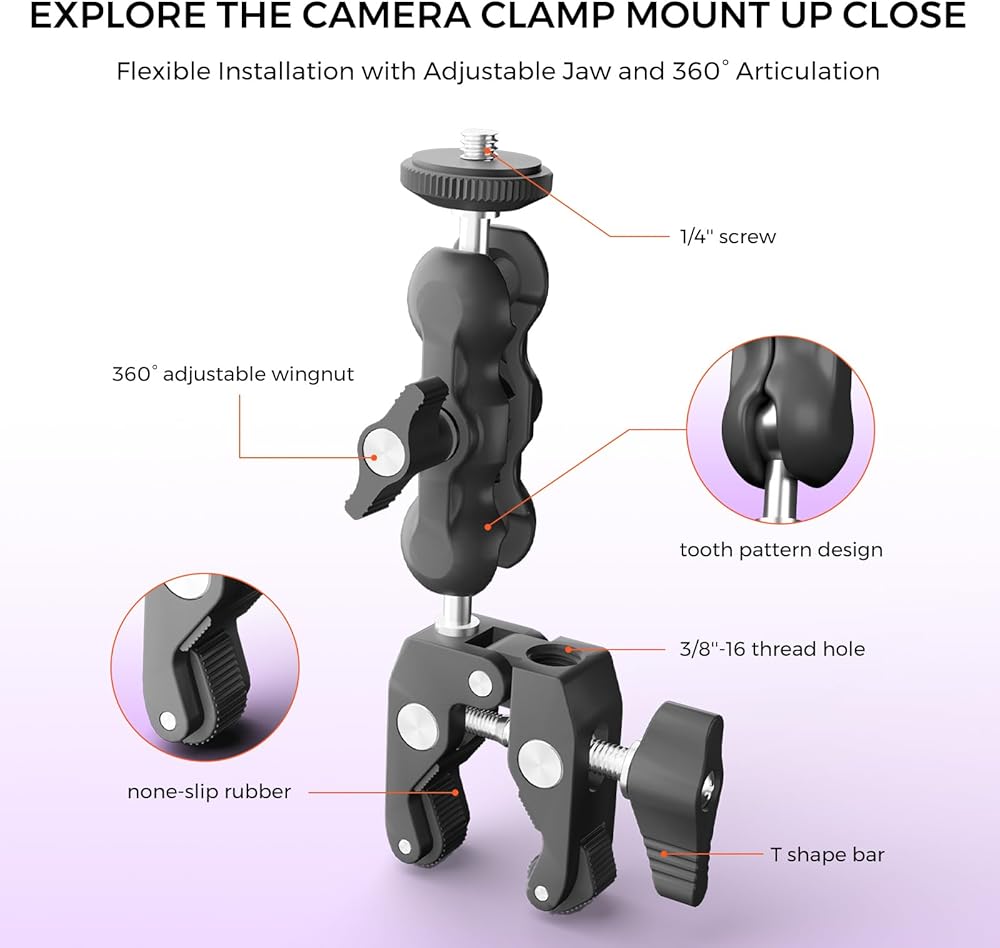 Simplify your livestreaming and content creation setup with the NearStream VM33 Wireless Streaming Camera & Camera Clamp Mount Bundle. This bundle pairs the VM33 streaming camera with a versatile camera clamp mount, allowing secure attachment to desks, shelves, poles, or studio equipment. Designed for flexibility and convenience, this setup helps creators achieve stable positioning and the ideal shooting angle for livestreams, vlogs, interviews, and online meetings.