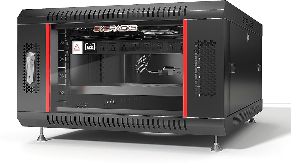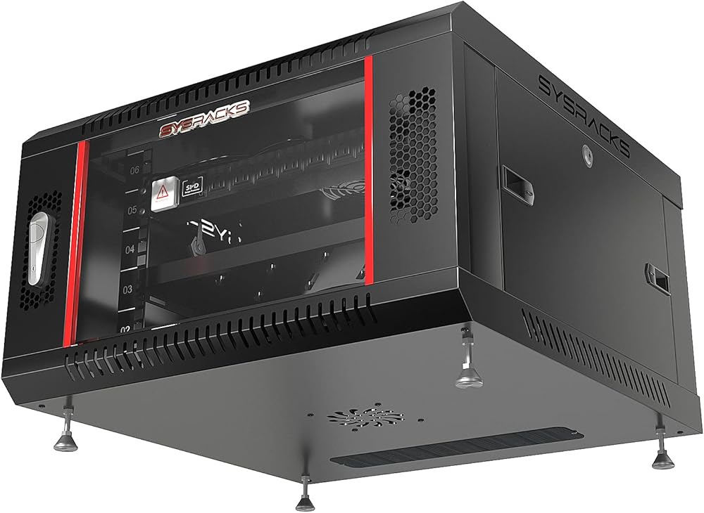 The 6U 24" Depth Wall Mount 19" Enclosure SRW 6.600 is an perfect solution for setting and securing IT, networking and server equipment in small spaces. Designed for easy wall-mount installation, it offers a compact and durable structure with a glass front door in a perforated metal frame, ensuring excellent airflow for cooling. This versatile server rack includes essential features like an active fan for ventilation, a power distribution unit (PDU), and a shelf for efficient organization. The cabinet also comes with adjustable mounting vertical U-Rails, a brush cable entry panel for neat cable management, and four flexible legs for converting the unit from wall-mounted to floor-standing unit. With a load capacity of up to 160 lbs, this 6U rack is perfect for various equipment such as routers, switches, and DVR's. It's ergonomic push-lock design provides secure access, while the removable lockable panels enhance security. The kit includes all necessary installation accessories, making it easy to set up. This 6U enclosure is ideal for small offices, home servers, or network setups needing a compact and secure solution.