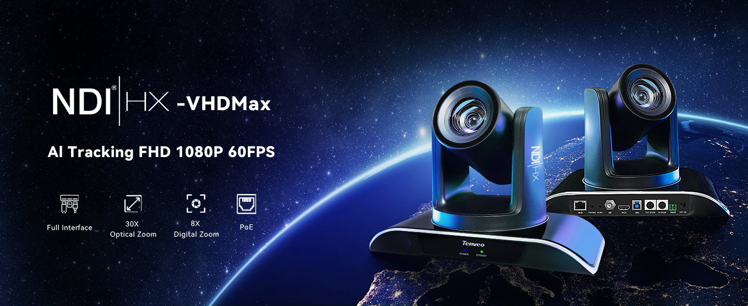 🌟Tenveo 𝐕𝐇𝐃𝟔𝟑𝟎𝐀-𝐍𝐃𝐈 - 30X Optical +8X Digital Zoom AI Auto Tracking NDI PTZ Camera with SDI/HDMI/USB3.0/LAN Interfaces, PoE supports, surprices you with a real color, sharp and crystal video quality. Support SRT, TCP/IP, HTTP, RTSP, RTMP, Onvif, DHCP, Multicast and other network protocols. Meanwhile, LINE IN and LINE OUT interfaces can be connected to audio devices, supporting simultaneous audio and video streaming(audio device is not included), meeting all your streaming needs.