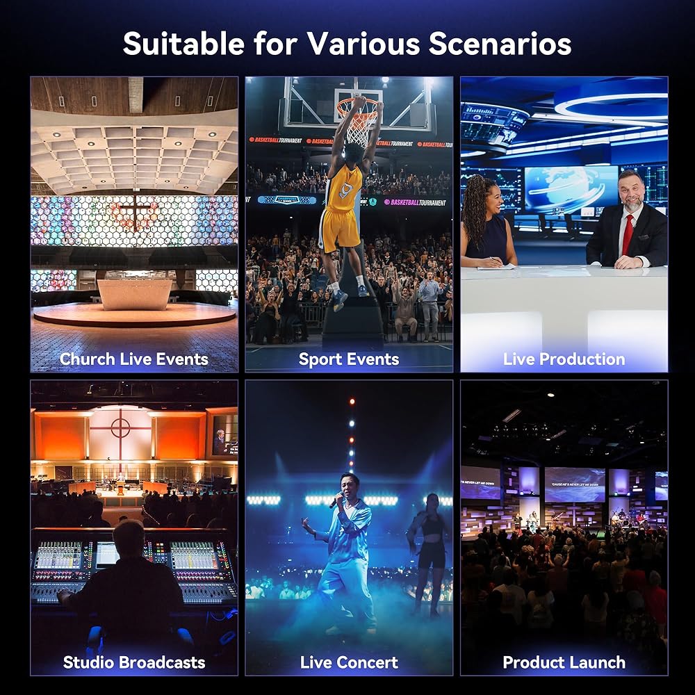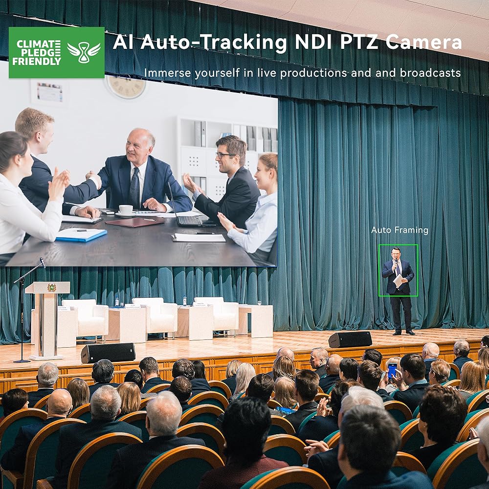 🌟AI Auto Tracking - The AI PTZ Camera with Auto-Tracking supports human shape tracking based on advanced AI algorithm. Through face recognition, it can accurately determine the location of people, realize automatic tracking and automatic frame selection. This makes it ideal for capturing live events, such as church services worship events, sporting events, live concerts, video production or large conferences.