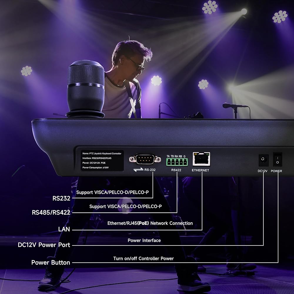 🌟Tenveo 𝐊𝐁𝟑𝟎𝟎𝐏𝐑𝐎 - NDI PTZ Camera Joystick Controller, 7'' LCD Quad-Screen Real-time Preview 4D Joystick Control Keyboard, supports NDI PoE VISCA Pelco-D/P RS422/RS485 RS232 RJ45 for Live Streaming/Church Worship Service/Online Conference, etc. Meanwhile, real-time preview allows you to effortlessly control and adjust your camera angles with utmost precision. You can easily pan, tilt, zoom, focus, backlight, presets, PTZ Speed and quick PTZ Camera select according to your needs.