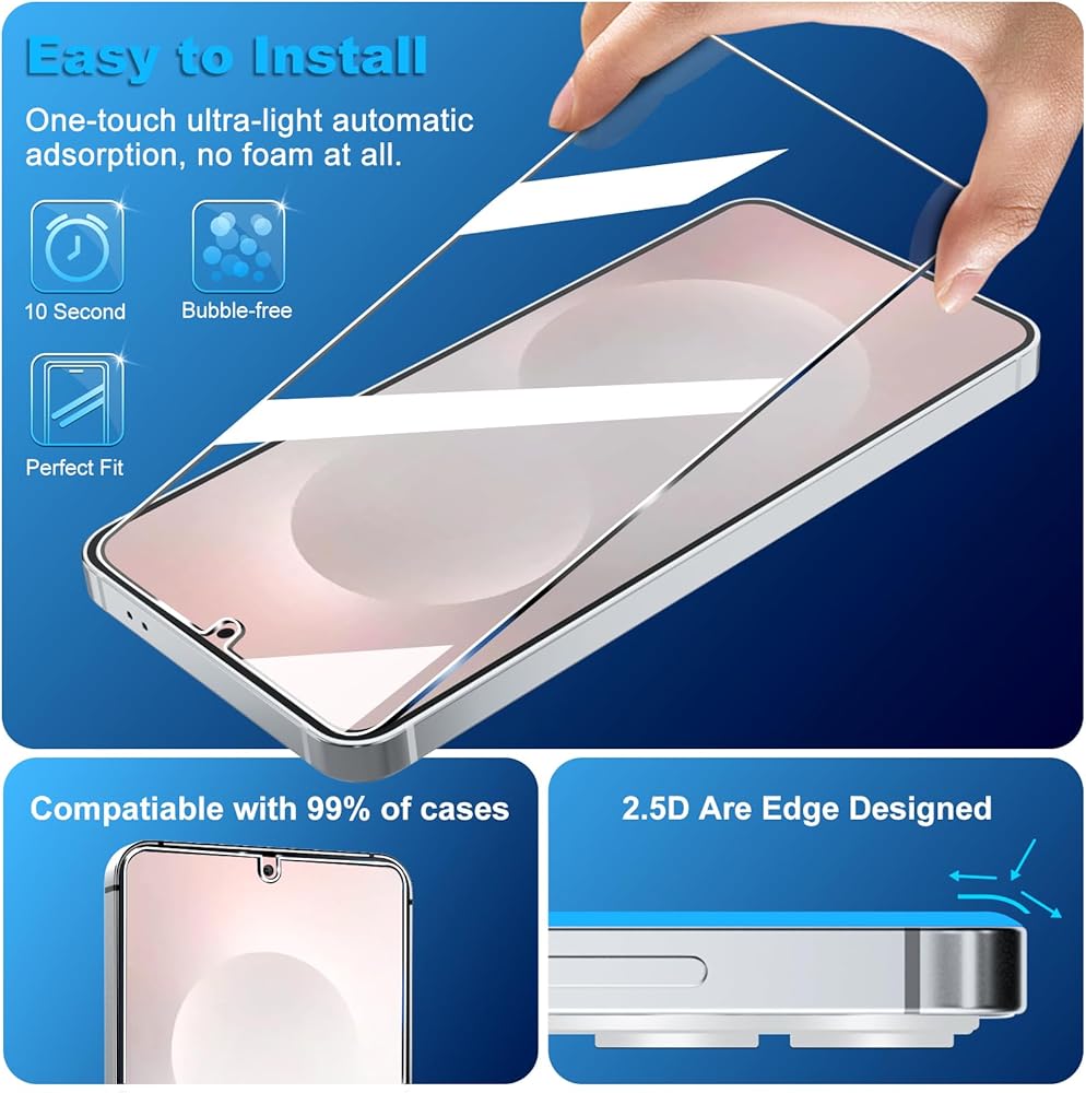 【صلابة 9H ومقاومة أقوى للخدش 3X】قم بترقية مقاومة الصدمات العسكرية 10 مرات مع تصميم معزز للحافة، زجاج مقسى مقاوم للمتانة للغاية يمكنه حماية هاتفك Galaxy S25 Plus بشكل فعال من الخدوش والخدوش غير المرغوب فيها بواسطة المفاتيح وبعض المواد الصلبة الأخرى. 3 قطع من واقيات الشاشة مصنوعة من الزجاج المقسى عالي الجودة لهاتف Samsung Galaxy S25 Plus (6.7 بوصة)