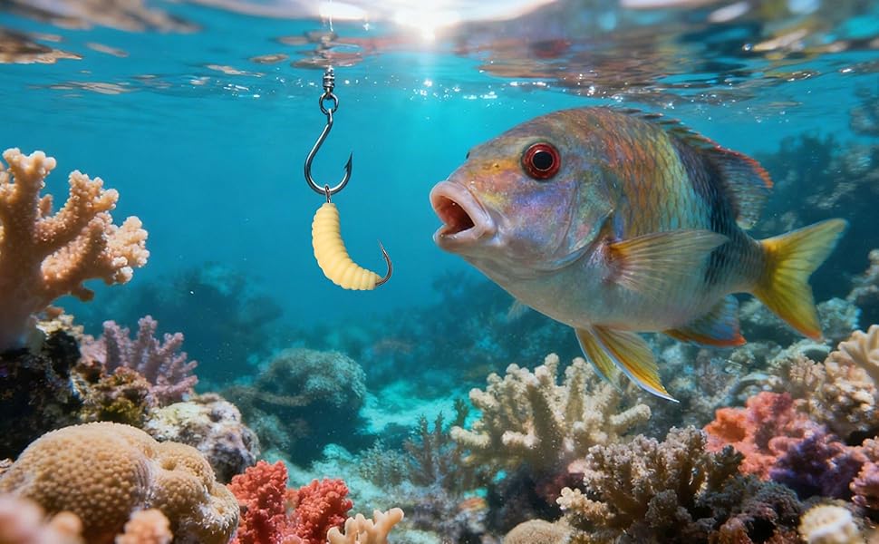 Perfect Size for Versatile Use: Each soft bait worm measures approximately 0.86 inches (22mm); hook size is 0.39 x 0.98 inches (10 x 25mm). Suitable for targeting small to medium-sized fish.