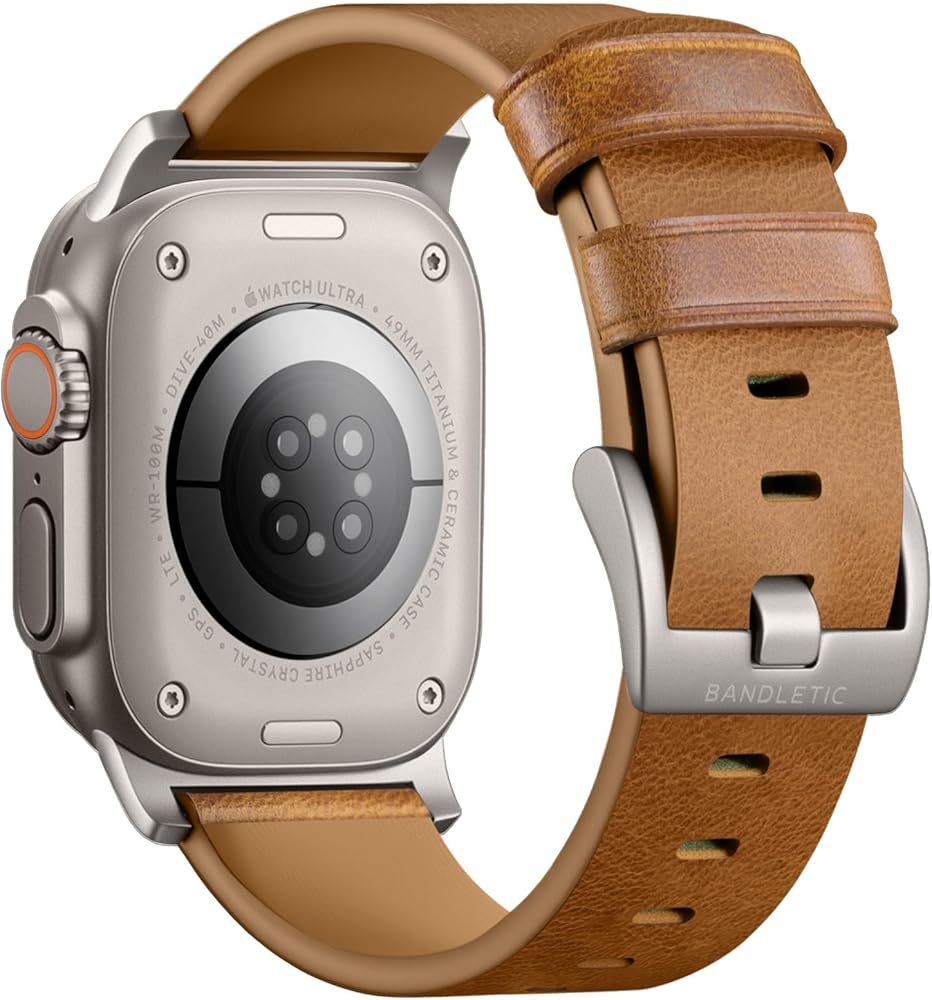 【Care Tips】Bandletic leather straps, designed for Apple Watch Series 11/10 band, may feel a little stiff and showcase unique natural grains, which is a hallmark of quality genuine leather but not a defect. With each wear, it will beautifully break in, softening to fit your wrist perfectly and developing a patina that is uniquely yours and more comfortable. We advise avoiding sharp objects, water submersion,and prolonged intense sun exposure to maintain its appearance