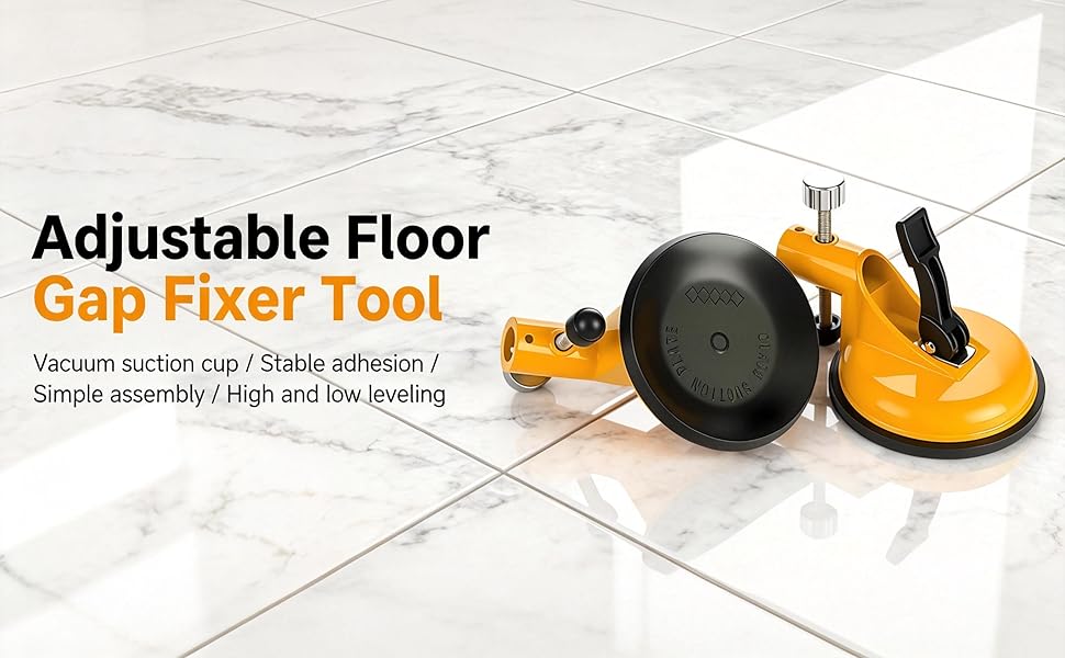 Adjustable Vacuum Suction Cups for Seam-Joining Leveling, Floor Gap Fixer Tool, 130 mm Height Setter, Stainless Steel Plate and Knob for Tile Leveling with Heavy-Duty Rubber Suction Cups (1 PCS)