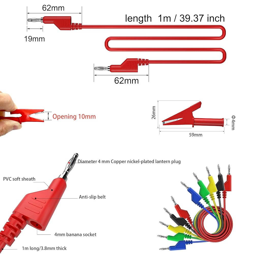 5 x Stackable Banana to Banana Plug Test Lead(5 Kinds of Color, Yellow,Blue,Black,Red,Green,One for each color)