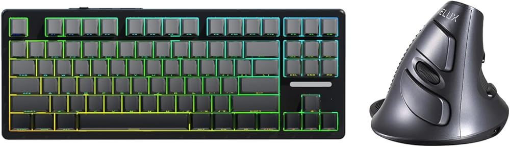 【Wireless Mechanical Keyboard and Mouse Combo】The DELUX KM87PRO is an 80% TKL wireless mechanical keyboard built for both gaming and productivity. It features a hot-swappable design that supports 3-pin/5-pin switches, paired with pre-lubed linear switches for a smooth, responsive 45gf actuation and 3.6mm travel. Its gasket-mounted structure, silicone padding, and five-layer sound-dampening foam deliver a soft, quiet typing experience by reducing vibration and hollow cavity noise. The side-printe