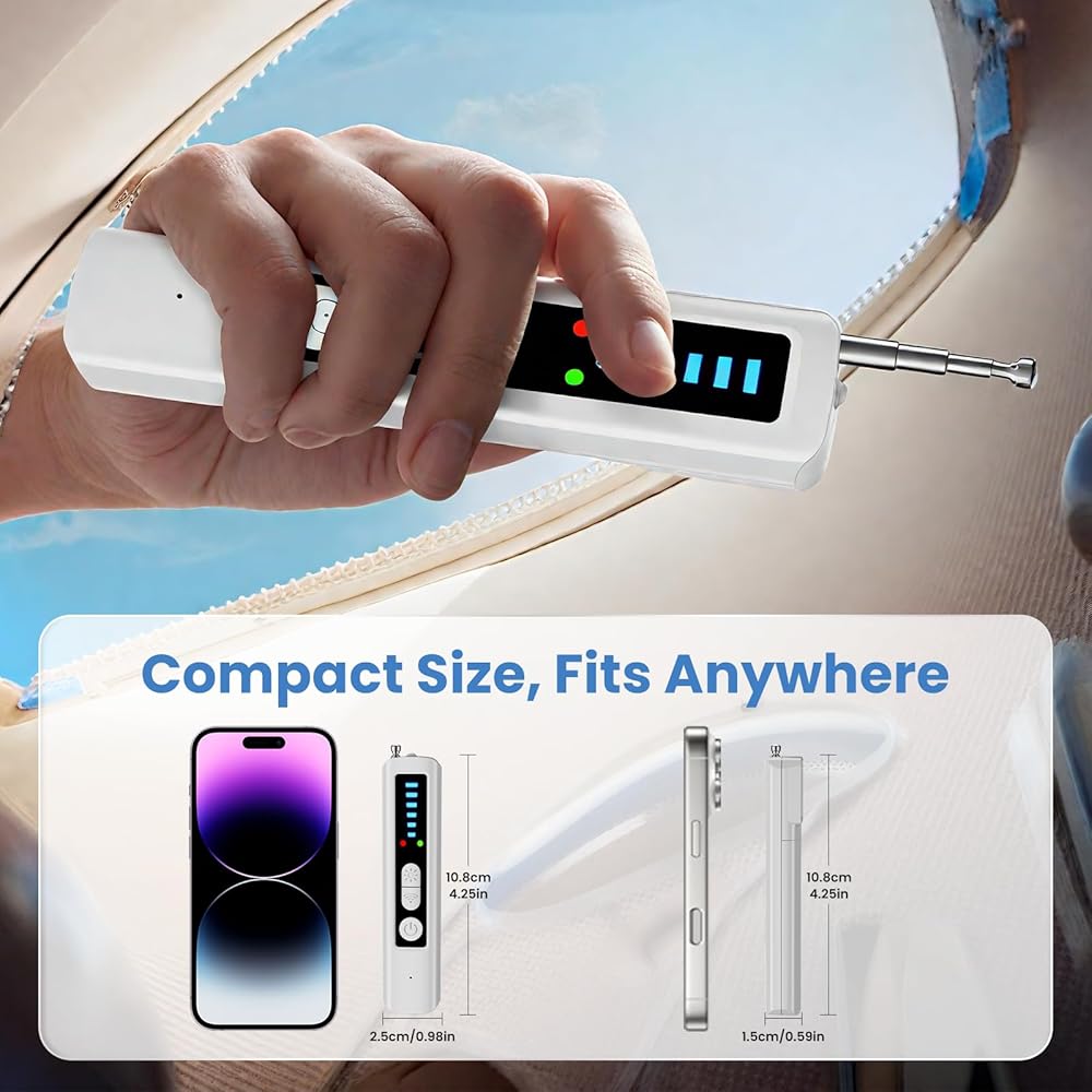 【مدمج ومحمول وسري】تصميمه الصغير وخفيف الوزن والمضاد للانزلاق يجعل من السهل حمله في الحقيبة أو المحفظة أو الجيب. قم بإجراء فحوصات فورية للخصوصية أينما ذهبت، وهي مثالية للسفر والعمل والأمان اليومي.