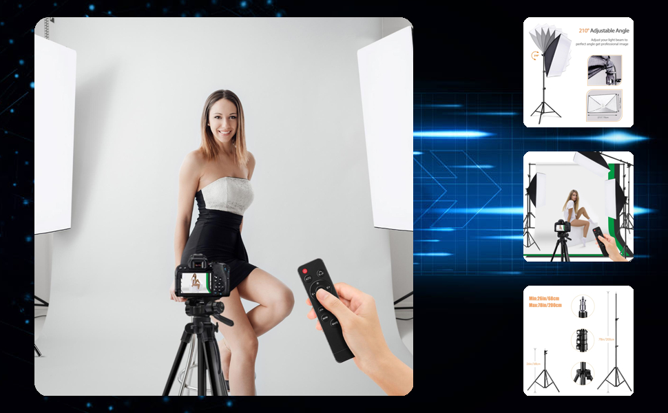4. Go Big or Go Home: Massive Softbox for Flawless, Studio-Grade Light. Say goodbye to harsh shadows and unprofessional hotspots. The secret is in the softbox! This large 50x70cm softbox with its white diffuser cloth wraps your subject in soft, forgiving, and perfectly even illumination. It rotates a full 210 degrees so you can nail the optimal light angle every time.