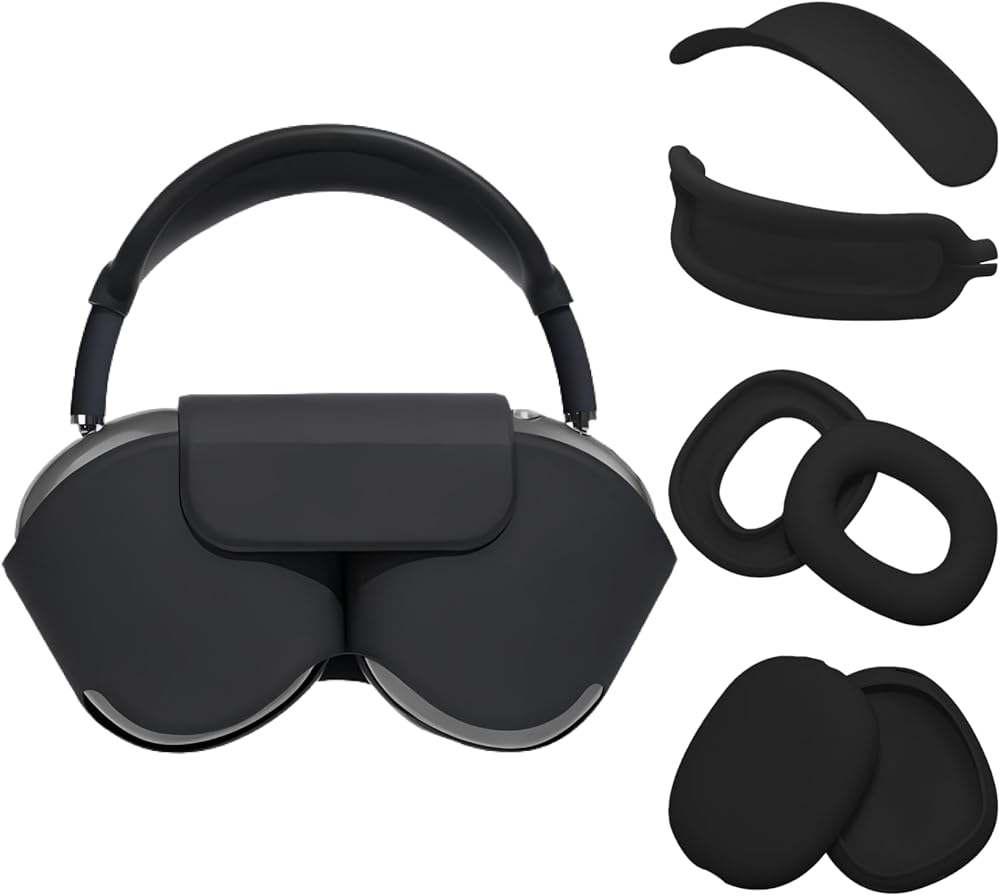 4-in-1 Silicone Cover - comes with 4-in-1 silicone ear pad case covers/ear cup covers/headband covers (up & down) for AirPods Max. This 4-in-1 soft silicone case can beautify your AirPods Max at the same time protects them from drops, dust, dirt, scratches, and shocks. Plus, it's water-resistant & sweat-resistant, giving you excellent protection when you're working up a sweat at the gym.