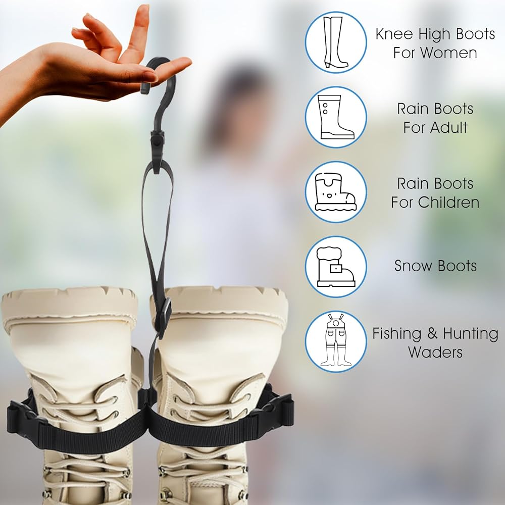 【Practical Function】- These hanger boots are designed with hooks, which are ideal for organizing fishing waders boots, hunting waders, wading boots, high rain boots, high snow boots and more.