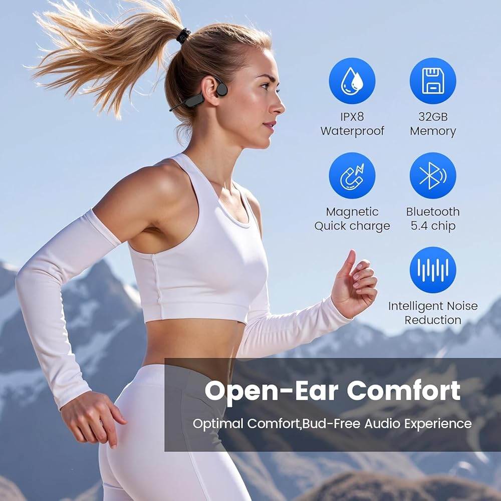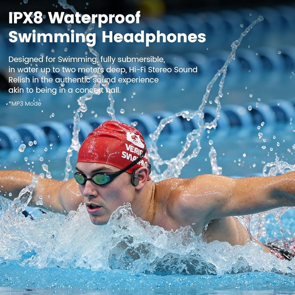 Swimming Headphones,IPX8 Waterproof Underwater Headphone,Built-in MP3 Player 32G Memory, Bluetooth 5.4 Open Ear Bone Conduction Headphone for Running Cycling (Black)