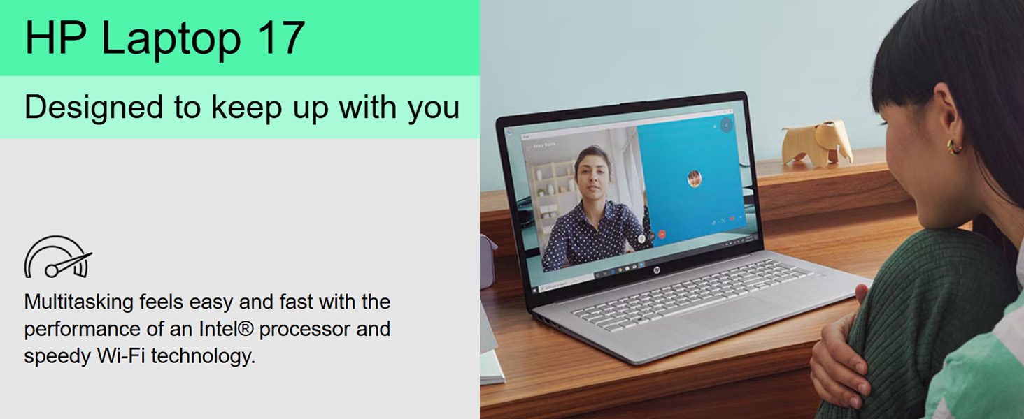 CRISP DISPLAY & PRIVACY - Features a HD webcam with privacy shutter for clear video calls, and it boasts a 17.3" HD+ (1600 x 900) IPS BrightView touchscreen display with integrated Intel graphics, delivering vibrant visuals. Additionally, it supports up to 2 external monitors via HDMI and Type-C ports at 4K (3840x2160) @60Hz (without docking station)