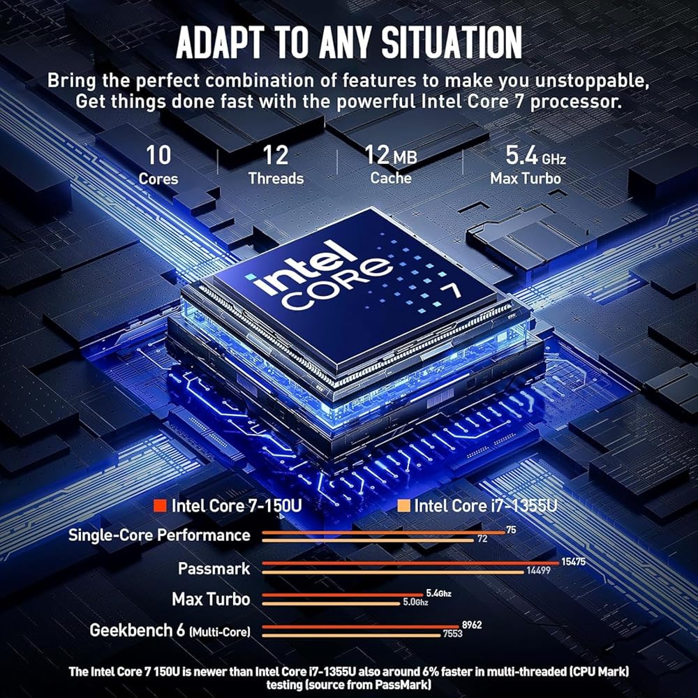 POWERFUL PERFORMANCE - Powered by an Intel Core 7 150U processor with 10-cores for superior efficiency and speed, 32GB DDR4 RAM for seamless multitasking, and a 1TB PCIe NVMe M.2 SSD for fast storage and reduced load times, ensuring smooth and responsive performance for all your tasks