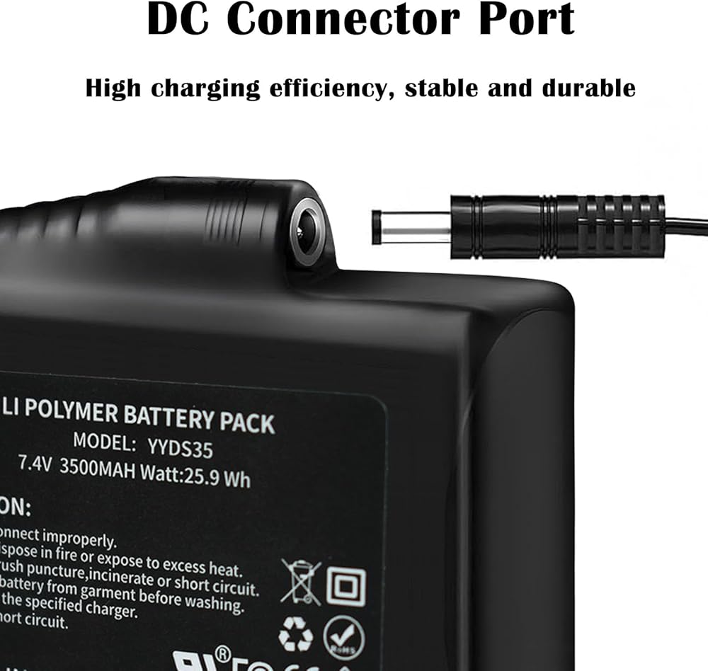 7.4V 3500mAh Batteries Compatible with Heated Gloves, Heated Socks Hat Scarf with DC Port, Lithium Polymer Batteries Replacement for Women Men Heated Gloves, Overcharge & Short Circuit Protection