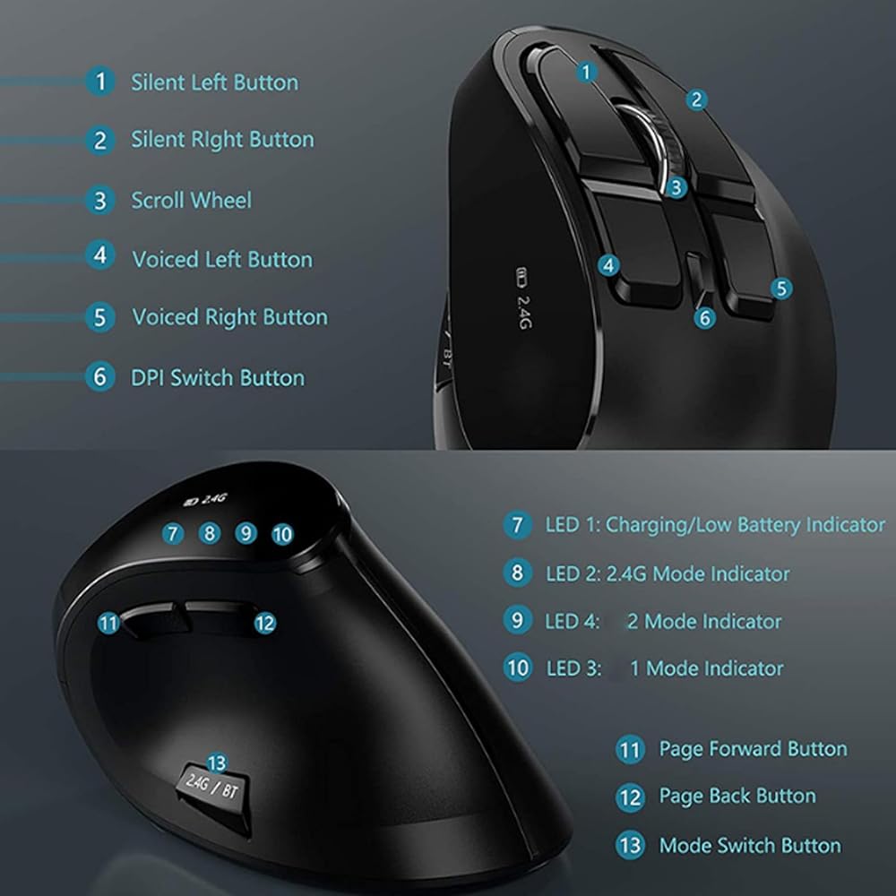 Ergonomic: Vertical Ergonomic Mouse is engineered for comfortable use over prolonged periods, this mouse features a dedicated little finger rest that promotes a comfortable hand position. This thoughtful design helps reduce strain while ensuring you remain productive and efficient throughout your work or gaming sessions.