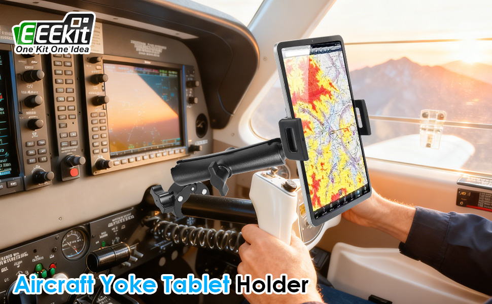 Secure Aircraft Tablet Mount: Designed for pilots and aviation enthusiasts, this yoke mount securely holds tablets and portable displays on handlebars, poles, or rails ranging from 0.5" (12mm) to 1.6" (40mm), keeping devices stable and hands-free during flight