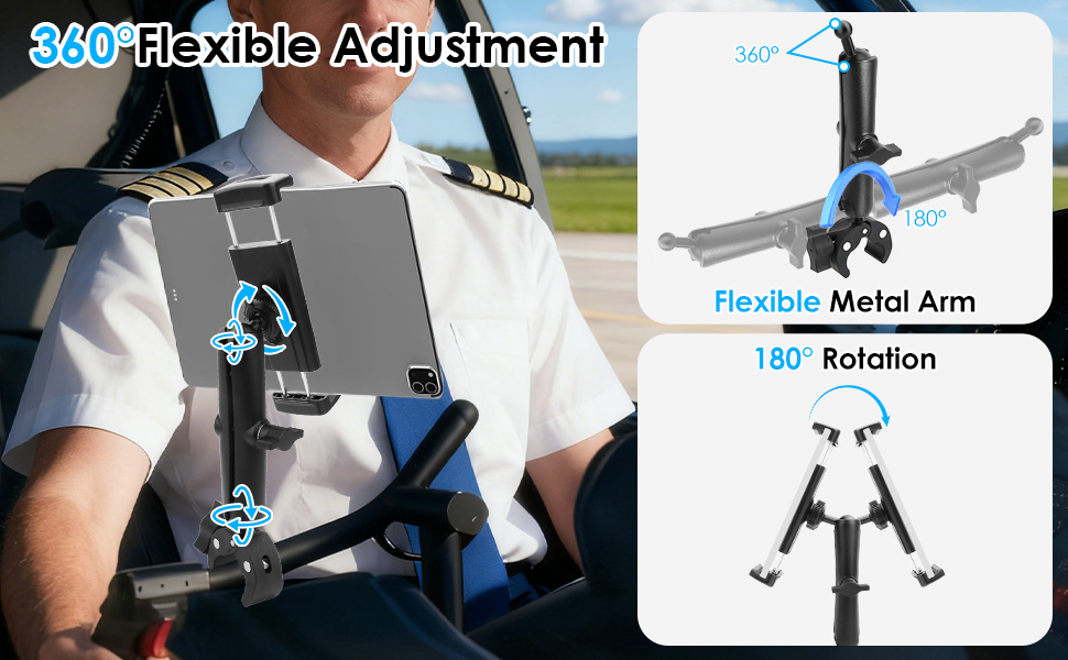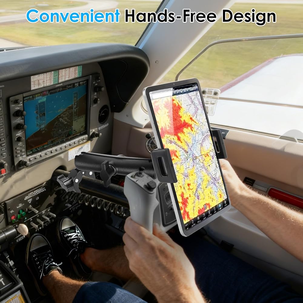 360° Adjustable Rotation: The yoke clamp allows full rotation and angle adjustment, ensuring optimal visibility for navigation apps, charts, flight planning, or simulator dashboards without repositioning