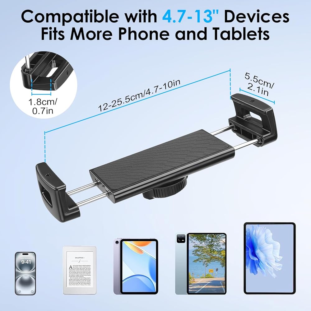Wide Compatibility: Fits tablets and smartphones with screen sizes from 4–10 inches, including devices compatible with iPad and iPhone, making it a versatile cockpit tablet holder for multiple devices