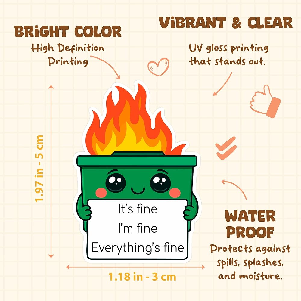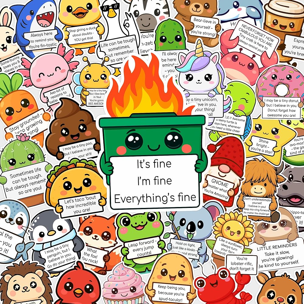 Dumpster Fire Stickers - 50PCS Emotional Support Stickers, Cute Inspirational Vinyl Stickers Pack for Water Bottle Laptop - Motivational Affirmation Gifts for Kids Teens Adults