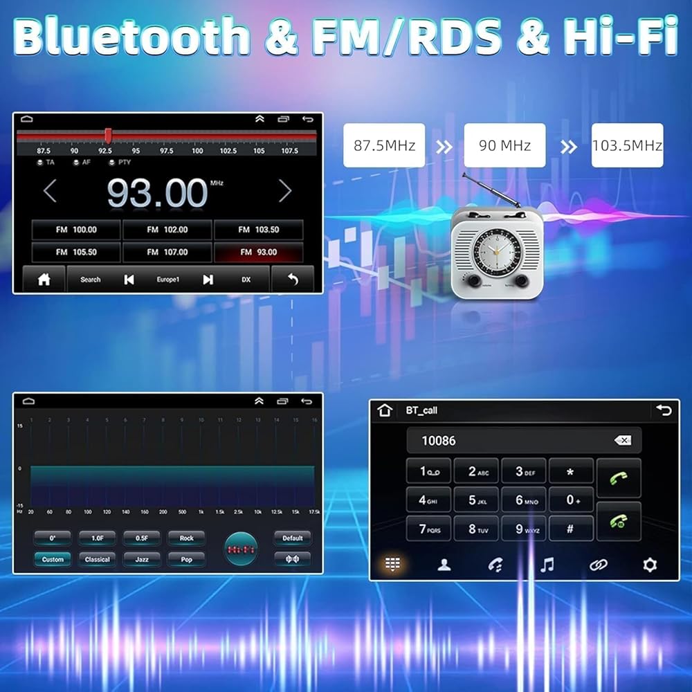 🚩【HD Touchscreen & Split Screen】~2.5D capacitive touch screen with high sensitivity and a full-viewing angle, 1024*600 high resolution, support 1080P video. The 9 inch IPS display provides you with lively colors from any angle. Support split-screen function, you can enjoy both interfaces on the same screen meanwhile, bringing you a pleasant driving journey