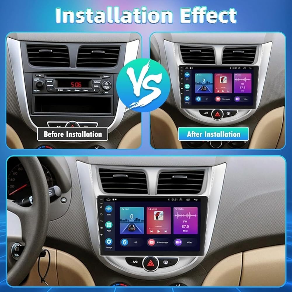 ⭐【Compatible with Wireless carplay & Android Auto】~9Inch IPS touch screen is compatible with Hyundai Accent Verna Solaris 2011-2019 radio. You can connect with carplay and android auto via USB cable, WiFi. Users who use with carplay can connect to the car system to realize voice-controlled navigation, make calls, send and receive messages, and listen to music, while keeping your hands free for totally safe driving maneuvers. It is only available for iPhone.
