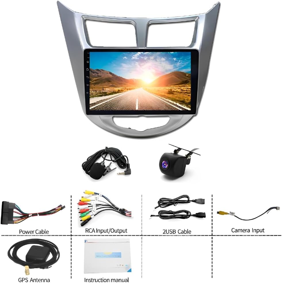 Android 13 Car Stereo for Hyundai Accent Verna Solaris 2011-2019 Car Radio with Carplay Android Auto GPS WiFi Bluetooth SWC AHD Rear Backup Camera, 2+32G