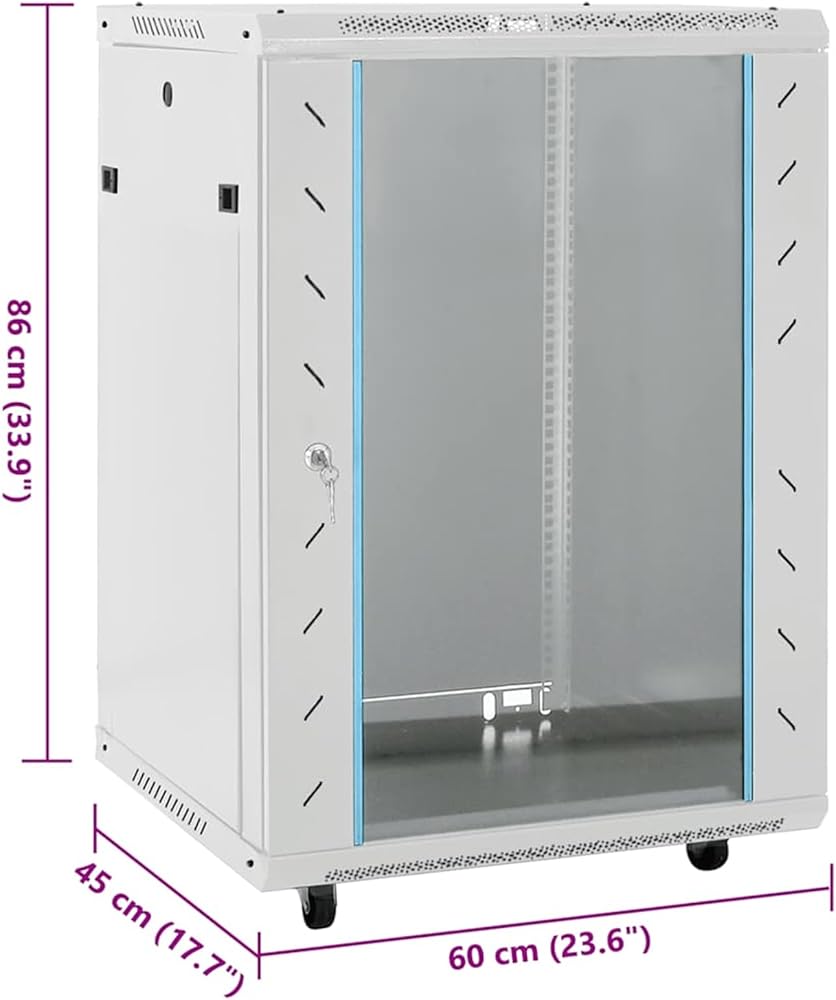 This 15U network cabinet is designed to be a great helper for keeping your network accessories in order. Solid structure: This data cabinet, featuring a solid structure, is made of premium cold-rolled steel, making it strong and durable to use. It is compatible with 1? standard equipment.Easy to maintain: The removable side panels make it easy to maintain network accessories.Lock device: Thanks to the included lock and key, the lockable front door prevents unwanted opening and keeps the items safe.Swivel feet design: The swivel feet make the cabinet easy to move around.