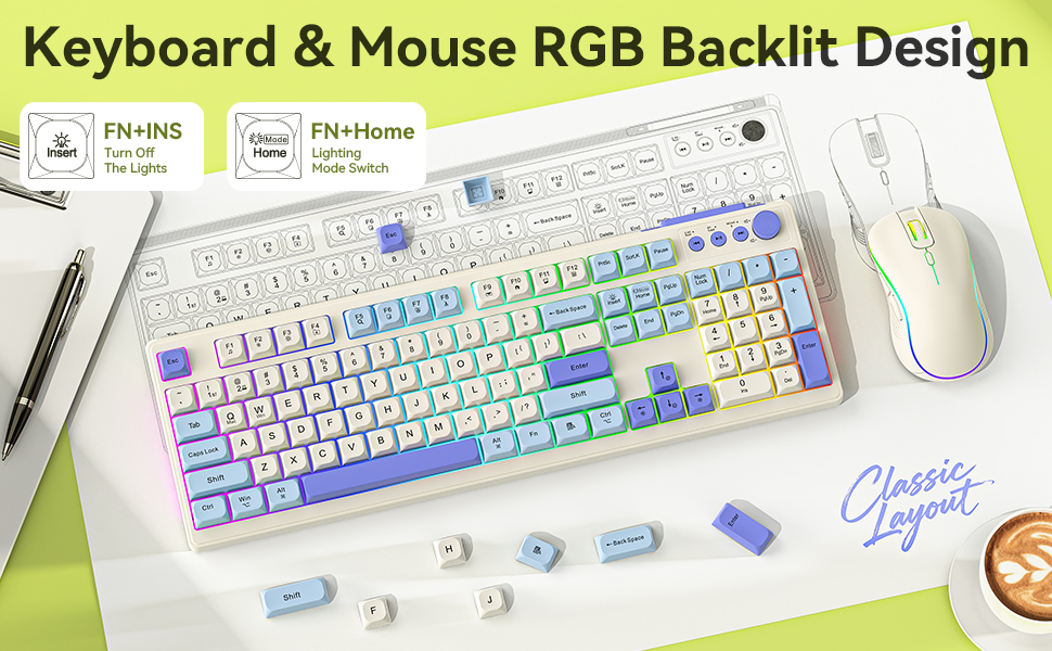 ★Type C Rechargeable: Built-in rechargeable 500mAh battery, this keyboard and mouse combo can be easily charged with included type-c charging cable (included in the package, Keyboard cover included). Fully charged for 3 hours, you can get a keyboard which works continuously up to 300 hours. Besides, it will automatically go into sleep mode to save energy if it not used for over 30 minutes. Press any key and you can wake it up.