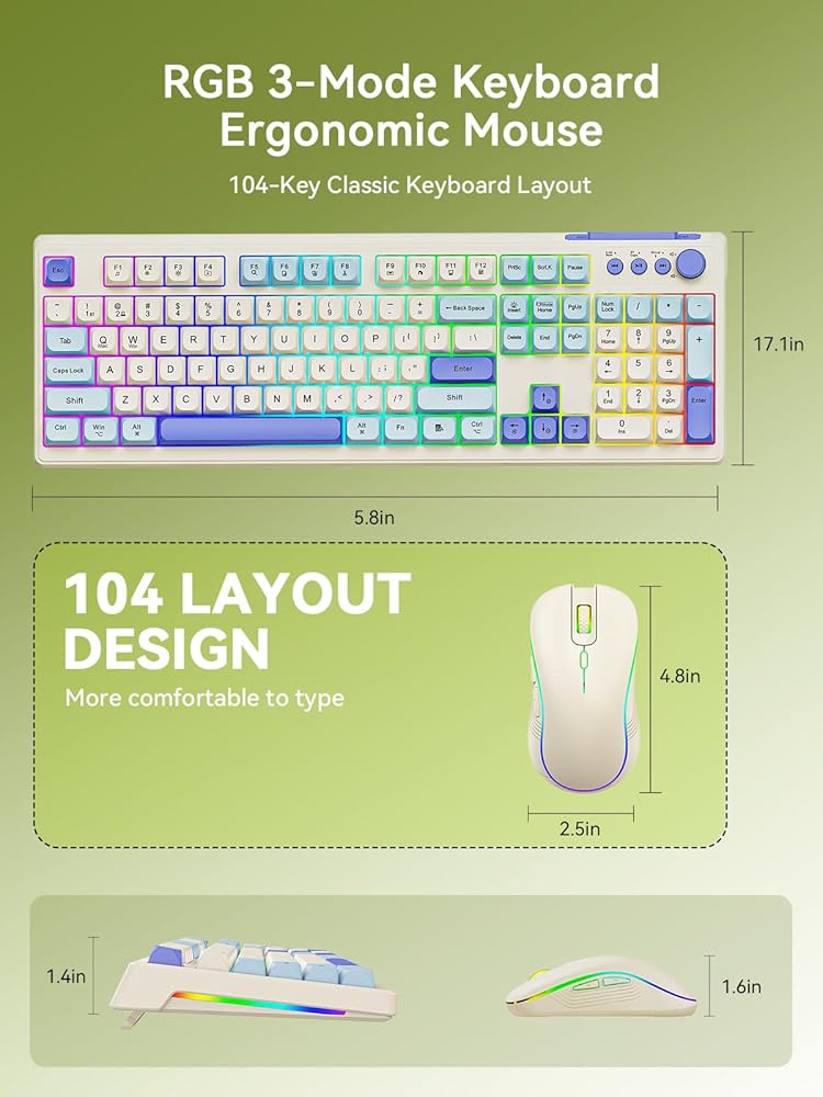 High compatibility:Multi-Device Keyboard and mouse for Mac, iPad, Apple, Android, Windows. Compatible with Mac OS/iOS 10.12 or above, Windows 8/10 or above, Android 4.3 or above.
