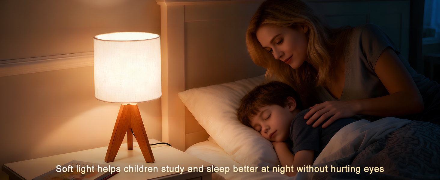 Sturdy & Safe Tripod Construction Designed with a stable wooden tripod base, this bedside lamp won't tip over easily. The triangular design ensures maximum stability, making it a safe choice for bedrooms, kids' rooms, or as a table lamps for living room. Enjoy peace of mind during family time or relaxation moments.
