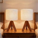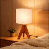 Modern Elegant Design with Warm Ambiance Enhance your space with this charming small table lamp featuring a light brown wooden tripod base. Its modern lamp design blends mid-century modern and boho aesthetics, creating a cozy atmosphere as the perfect bedroom lamp, nightstand lamp, or table lamp for living room. The soft glow adds warmth to any room setting.