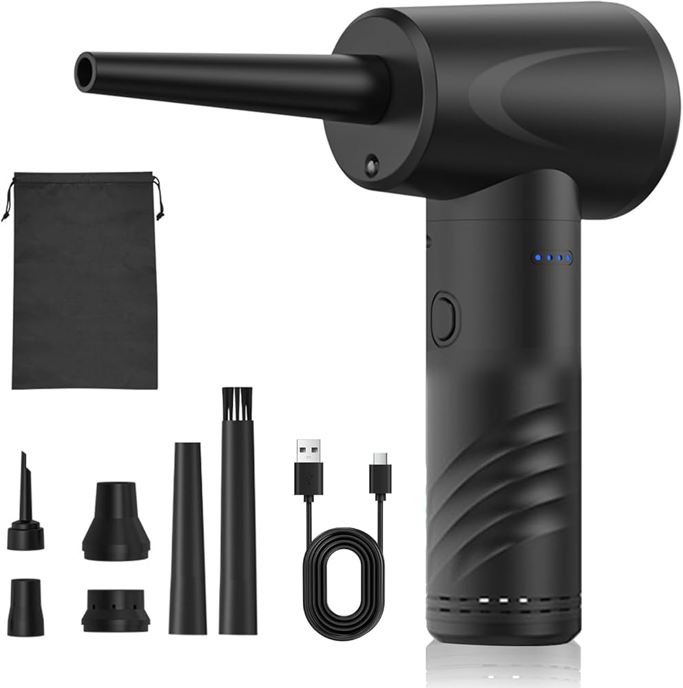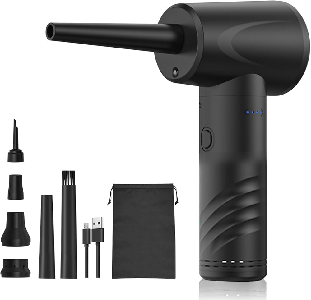 [Powerful High-speed Motor] This electric duster boasts a formidable 53000 rpm motor delivering forceful airflow to blast away dust from keyboards computer components car interiors and other hard-to-come crevices. its adjustable three-speed settings (40000/46000/53000 rpm) ensure optimal power for delicate electronics or stubborn buildup.