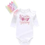 • Half birthday party outfits for baby girls,a fun milestone photo shoot ,including 1 piece of 100% cotton baby rompers with ruffles on the shoulders,1 piece of half Birthday Crown. Whether it's for party outfits or for taking photos, it can make your little one adorable and comfortable.