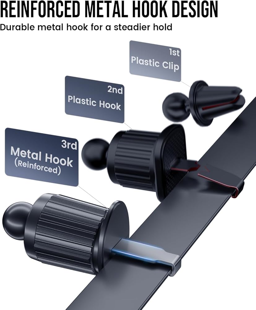 UPGRADED VENT CLIP, ROCK-SOLID HOLD – Screw-tightened telescopic metal hook grips the vent firmly, helping keep your phone stable on bumpy roads and sharp turns.