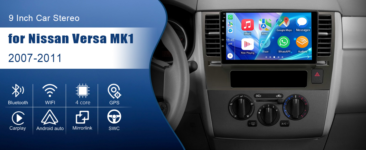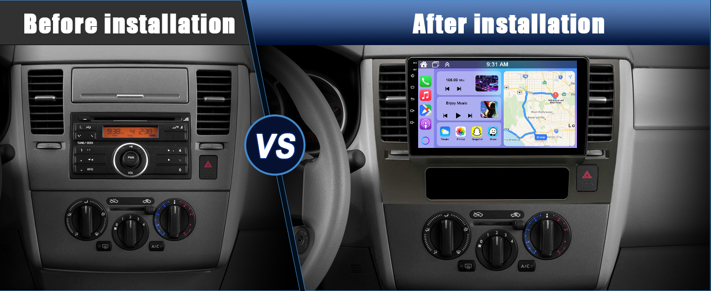 【Fitment】Our double din car stereo radio is specifically designed for Nissan Versa MK1 2007 2008 2009 2010 2011 with 9 inch touch screen radio, ensuring a fit and seamless integration with your vehicle. Please check the year, dimensions and shape of the center console of your vehicle before purchasing