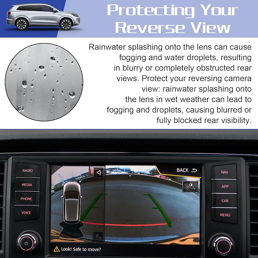 Usage Guide: Install rain guard for vehicle reversing cams is a breeze with our 3-step process: clean, peel, and press. No tools required, and no damage to your vehicle.