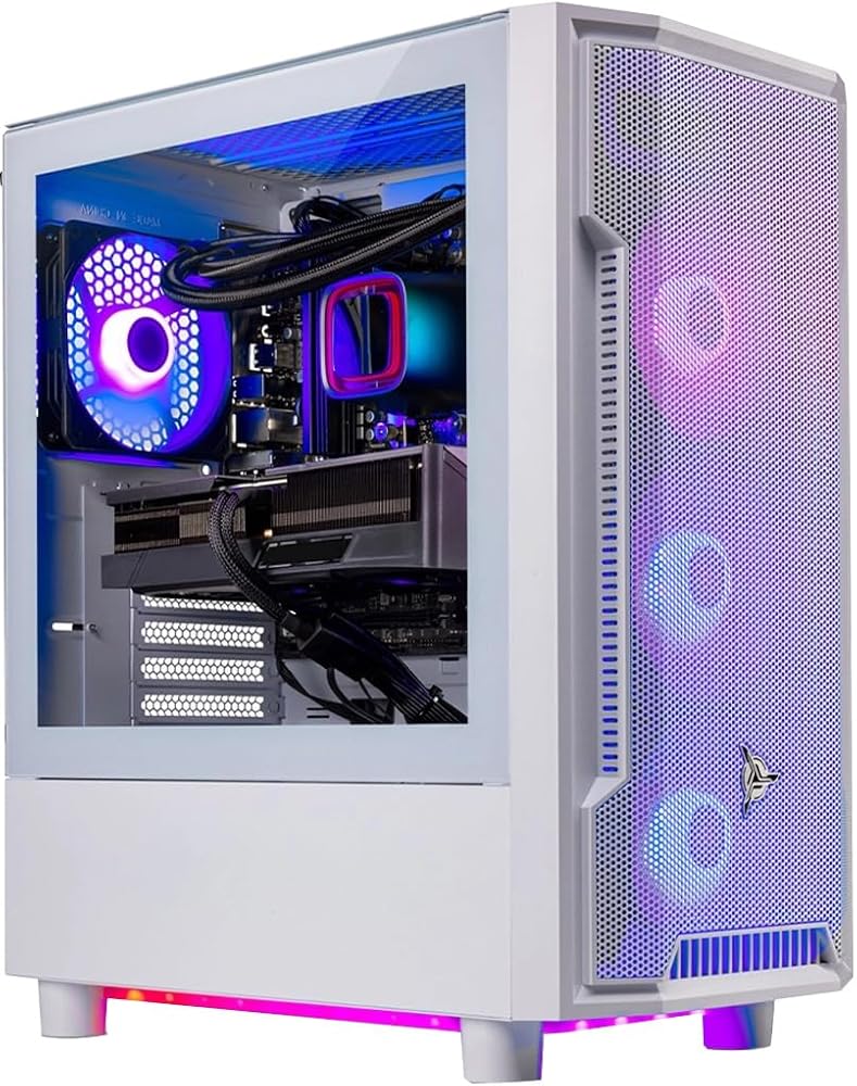 • High-spec AIO liquid coolers used, delivering unmatched cooling performance for a perfect operational experience and unparalleled cooling performance. With hardware unrestricted by temperature limits, you can unleash its full potential. Whether gaming, creating, or working, you'll never suffer from thermal throttling again. | Skytech Archangel Gaming Case - White Edition with Front Mesh | 1 Year Warranty on Parts and Labor | Free Technical Support | Assembled in the USA