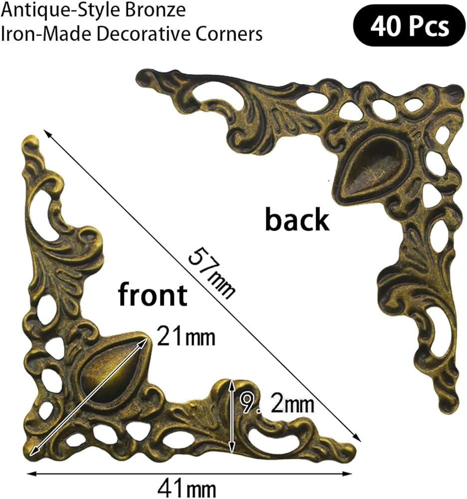 - 40 Pcs Antique Bronze Metal Edge Corner Protectors: 2.24 x 1.61 inches, Decorative & protective metal corners for scrapbooking albums, photo frames, jewelry boxes—adds vintage charm