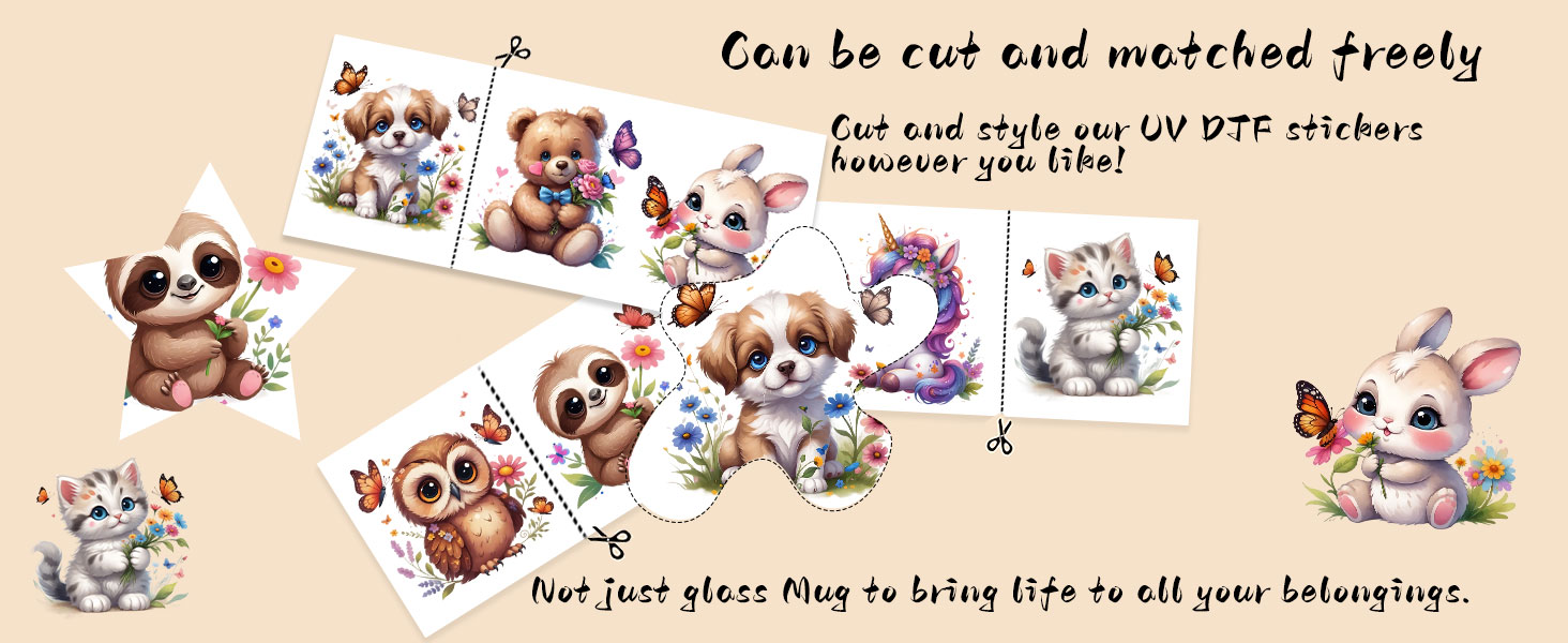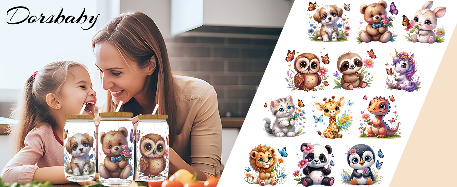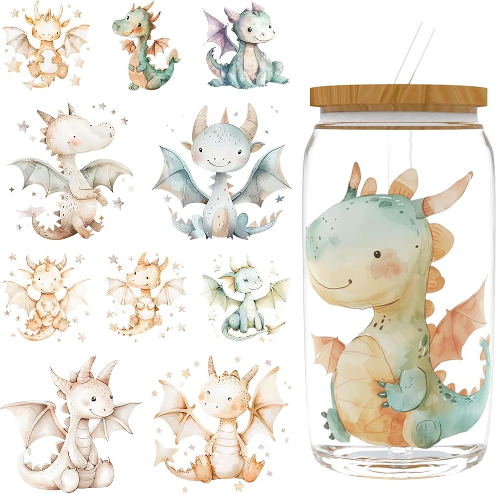 12 UV DTF Cup Stickers: 12 vibrant designs, no heating required, suitable for 16oz insulated mugs, glasses, tumblers, and water bottles