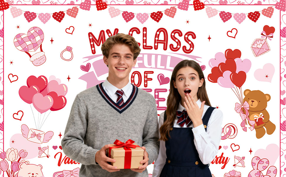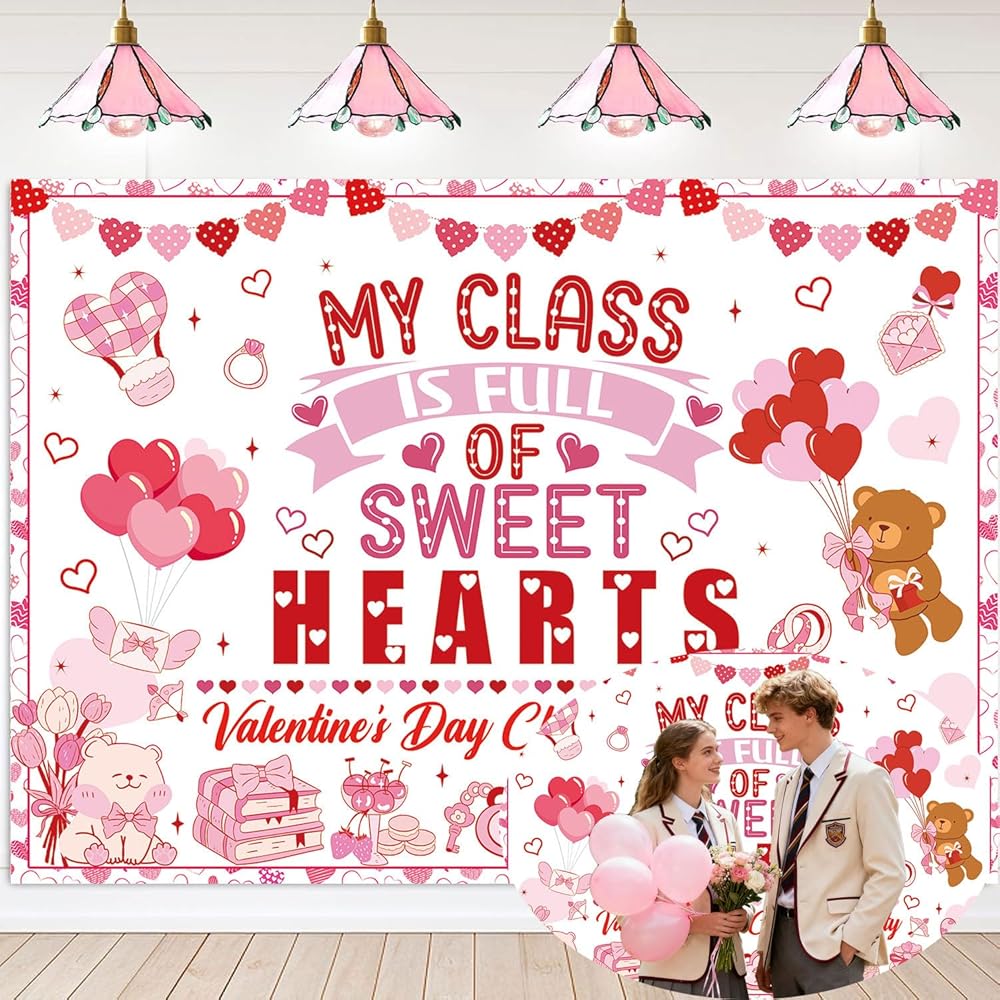 Happy Valentine's Day Backdrop 7x5FT My Class is Full of Sweethearts Banner Background Pink Love Heart Valentines Day Decorations for School Classroom in Kuwait