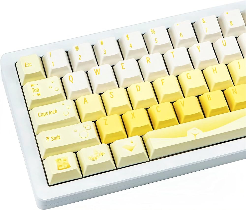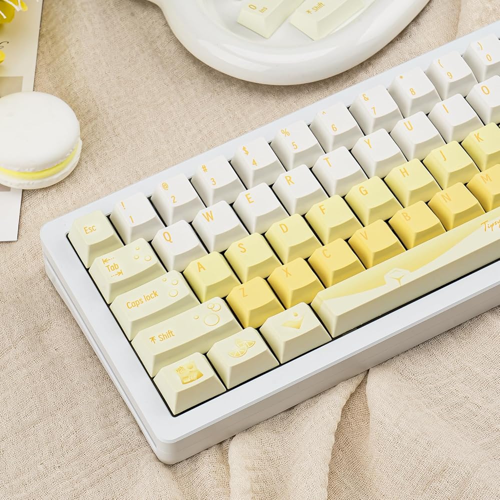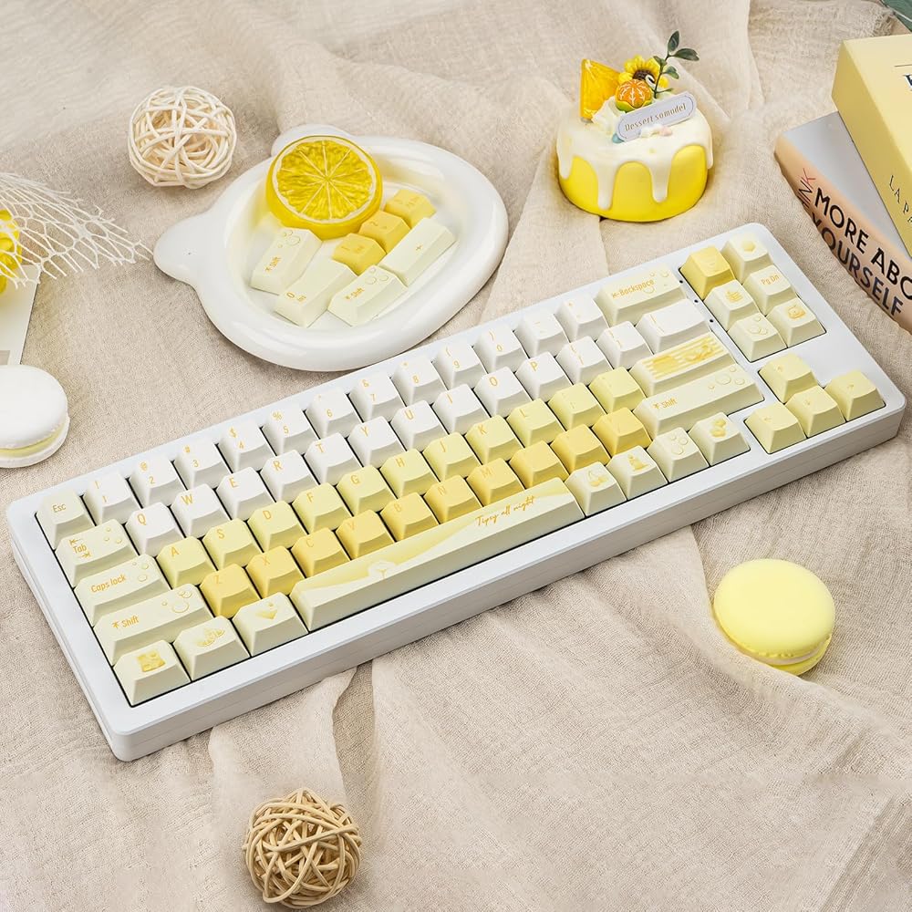 Cream Keycaps: PBT keycaps are made of five-side dye sublimation process, white and yellow color scheme looks very warm, dye sub PBT keycaps are printed clearly, the color is bright and never fading